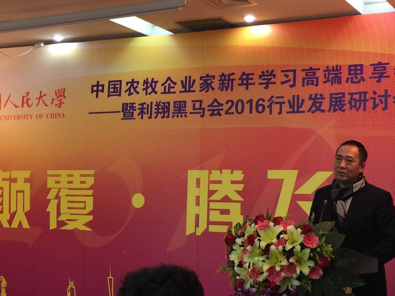 2016中國(guó)農(nóng)牧企業(yè)家新年學(xué)習(xí)高端思享會(huì) 暨利翔黑馬會(huì)2016行業(yè)發(fā)展研討會(huì)勝利召開 —— 張利庠教授:跨界思維顛覆行業(yè)思維 — 世界是一個(gè)系統(tǒng)、不是一個(gè)專業(yè);消費(fèi)綁架生產(chǎn)、金融決定實(shí)業(yè)、系統(tǒng)大于專業(yè);文化和心態(tài)顛覆技術(shù)和生存 — 從“取勢(shì)”到“明道”,不僅是賺錢、還要為全人類面臨的重大挑戰(zhàn)提出解決方案,從浮躁到安穩(wěn),企業(yè)家應(yīng)該為興趣、為理想、為夢(mèng)想而創(chuàng)業(yè)創(chuàng)新,"明道"未來(lái)!會(huì)上和農(nóng)牧業(yè)集團(tuán)董事長(zhǎng)方彥明先生也作了精彩分享!